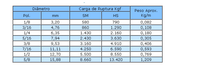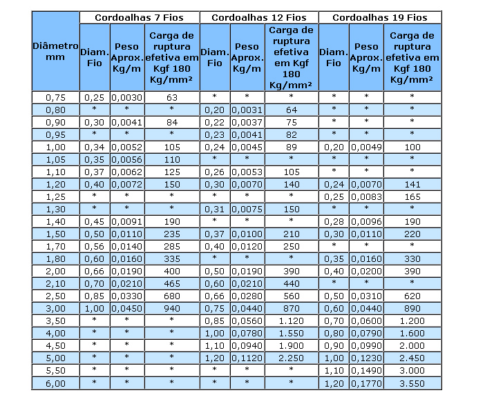 *Estas cordoalhas podem ser fornecidas em aço inox.